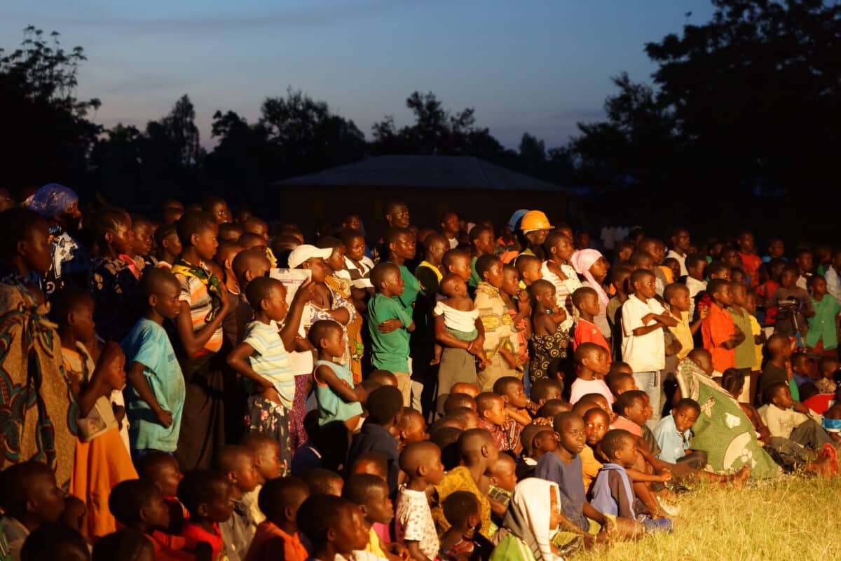 “Toen we vlak voor zonsondergang het dorp binnenreden, zagen we een hele stroom mensen richting het veld lopen waarop de film zou worden vertoond. Honderden mensen zaten te wachten op wat komen zou.”